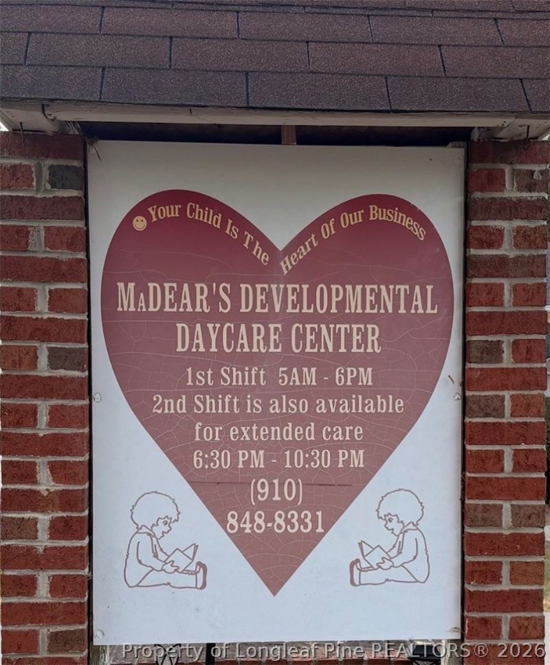 Licensed Daycare Center - Unique opportunity to own a residential property currently operated as a licensed daycare center for over 25 years in a convenient location near Fort Bragg, schools, shopping, and major roadways. Situated in a residential setting with special use approval, this property offers potential for continued childcare operations, subject to local regulations. This daycare center has an established client base and is approved for the capacity of up to 50 children. Ideal for owner-operators or investors seeking a versatile property with income potential. The daycare currently offers transportation services, including pick-up and drop-off for students attending nearby Upchurch Elementary School, providing added convenience for families. Property is being offered as a potential turnkey opportunity, including select furnishings, equipment, and a 2011 15-passenger commercial van. Business goodwill and operational components are included in the sale. Buyer to verify zoning, licensing transfer requirements, and continued use.